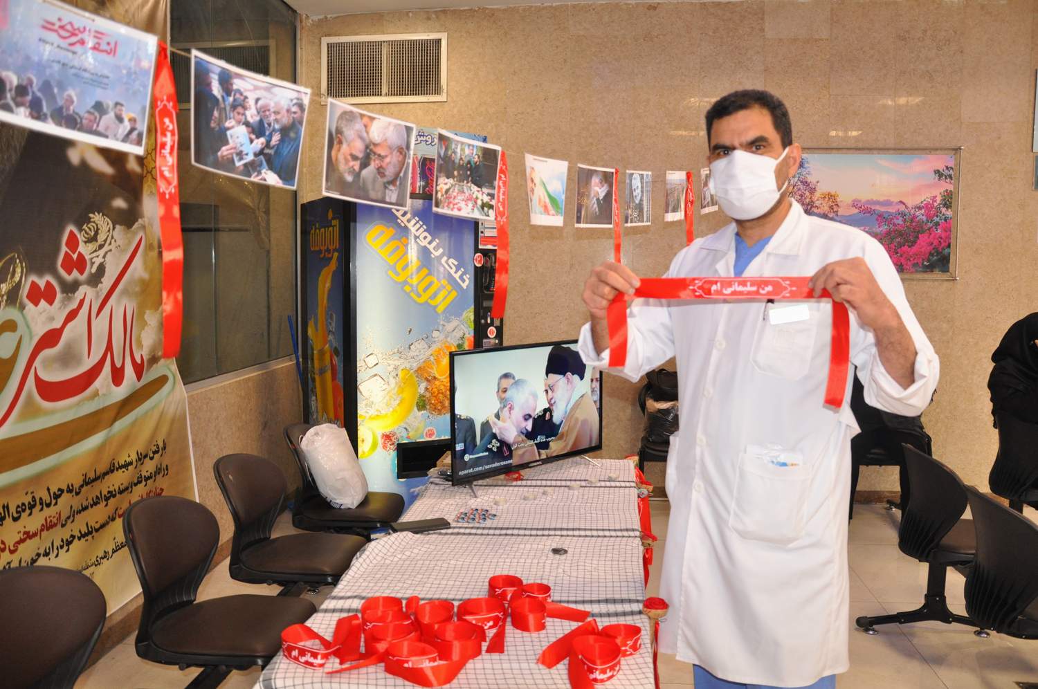 همچنین عکس و عکس نوشتههاییبه یاد سردار سلیمانی روز یکشنبه ۱۴ دی، در سالن اصلی بیمارستان در معرض دید مراجعه کنندگان قرار گرفت.