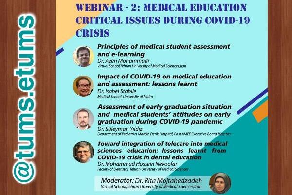 دانشکده مجازی با همکاری معاونت بین الملل دانشگاه دومین وبینار یادگیری الکترونیکی در آموزش پزشکی از سری برنامه های مدیتک را با محوریت چالش ارزیابی دانشجو در آموزش پزشکی طی بحران کووید 19 برگزار میکند.