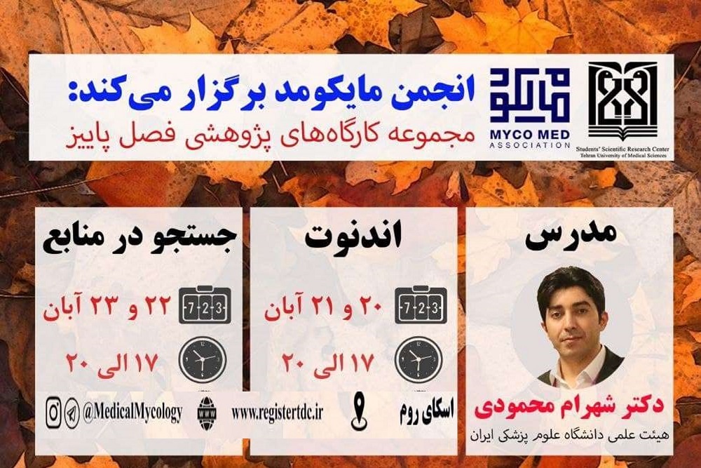انجمن علمی دانشجویی مایکومد دانشگاه علوم پزشکی تهران، 5 کارگاه آنلاین پژوهشی را در آبان 1400برگزار خواهد کرد.