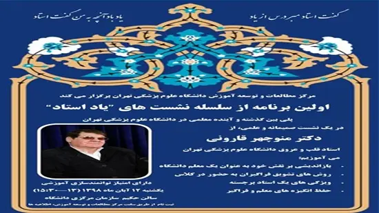 اولین نشست برنامه یاد استاد: پلی بین گذشته و آینده معلمی در دانشگاه علوم پزشکی تهران برگزار می شود