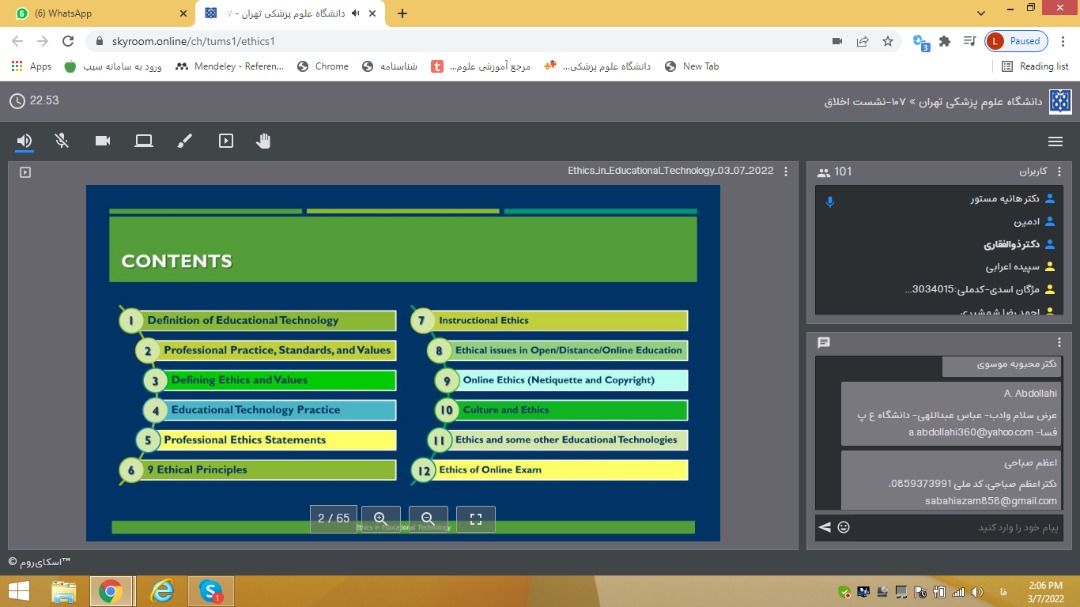 در این نشست مجازی که با حضور بیش از 140 تن از مخاطبان علاقه مند به این حوزه از سراسر کشور برگزار شد، دکتر هانیه مستور عضو هیات علمی دانشکده پزشکی دانشگاه علوم پزشکی مشهد درخصوص شکاف دیجیتال و تاثیرات آن در سیستم آموزشی به ویژه در آموزش پزشکی، کاربرد فناوری در تعلیم و تربیت و مسئل اخلاقی در حوزه فناوری آموزشی توضیحاتی را ارائه کرد.