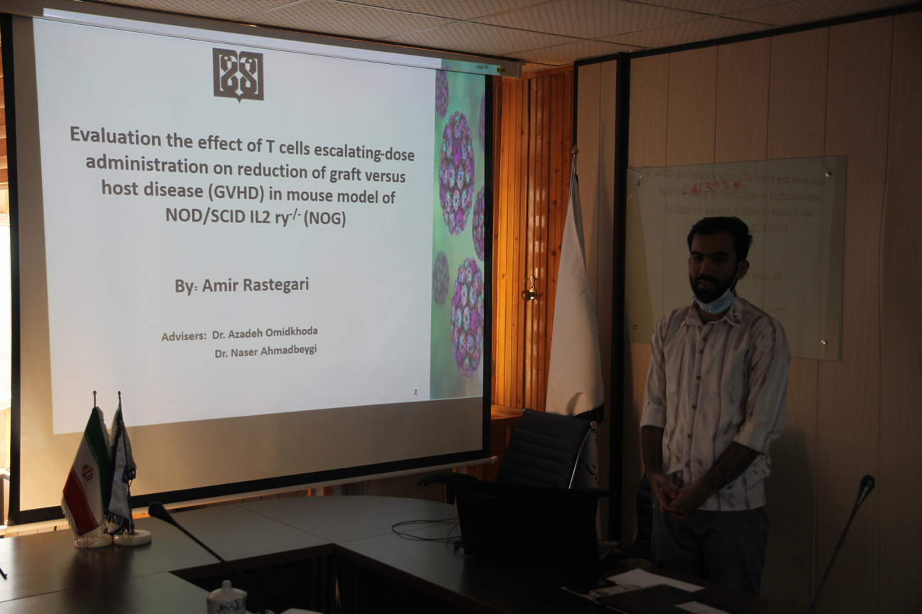به گزارش روابط عمومی دانشگاه علوم پزشکی تهران دانشکده پیراپزشکی، امیر رستگاری دانشجوی کارشناسی ارشد هماتولوژی این دانشکده از پایان‌نامه خود با عنوان بررسی تاثیر تجویز چند دوزی (Dose escalating) لنفوسیت T انسانی برکاهش اثرات بیماری پیوند علیه میزبان (GVHD) در مدل موشی NOG (-/-NOD/SCID IL2ry) دفاع کرد.