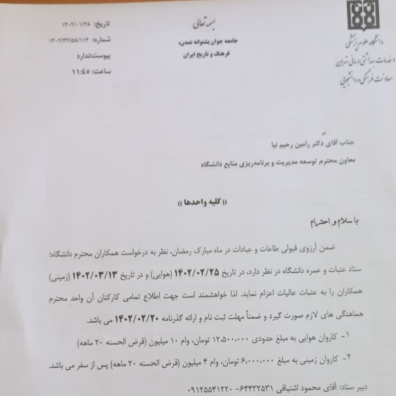 دومین کاروان زیارتی عتبات عالیات ویژه همکاران دانشگاه علوم پزشکی تهران، اردیبهشت و خرداد 1402 اعزام خواهند شد.