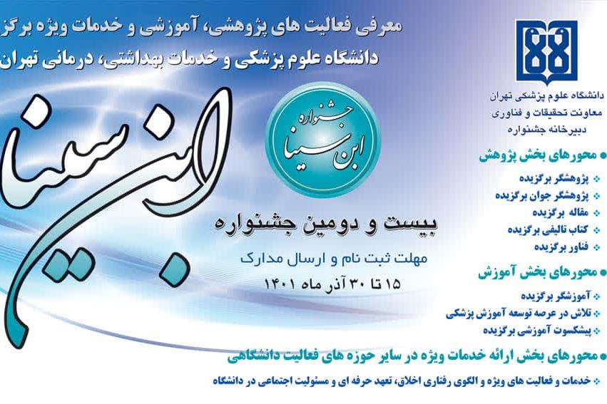 مهلت ثبت نام در بیست و دومین جشنواره ابن سینا دانشگاه علوم پزشکی تهران