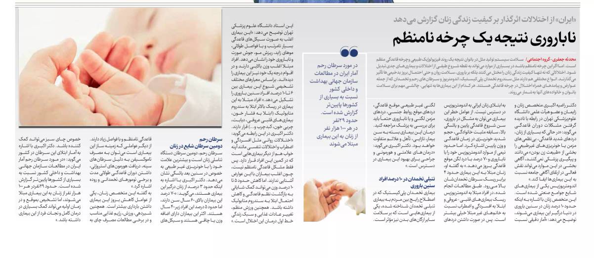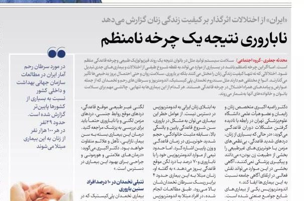 روزنامه «ایران» از اختلالات اثرگذار بر کیفیت زندگی زنان گزارش می دهد