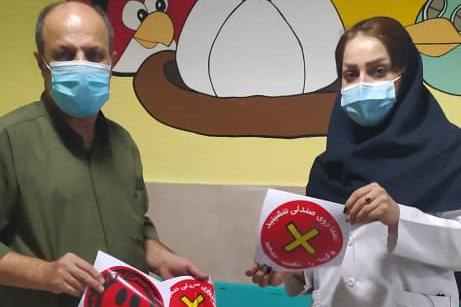 نصب برچسب های جدید فاصله گذاری اجتماعی در بخش های درمانگاه، آزمایشگاه، و رادیولوژی بیمارستان بهرامی
