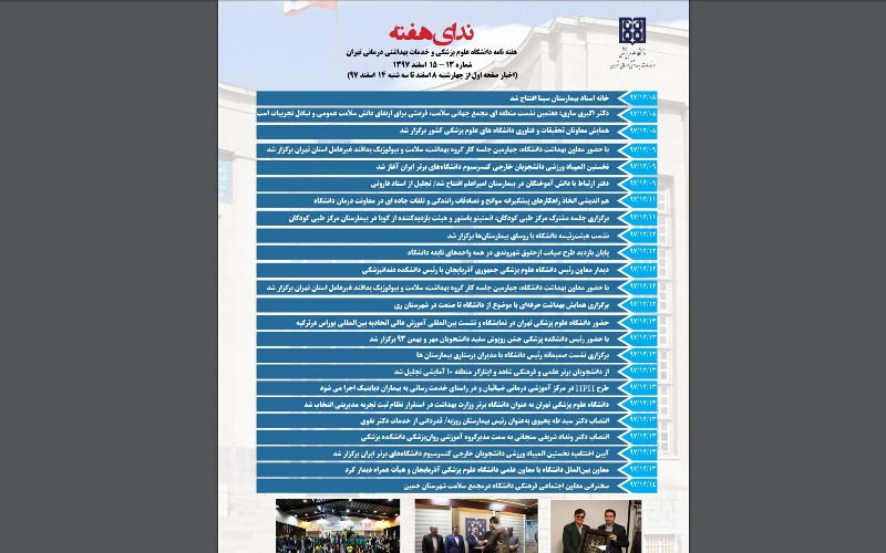 هفته نامه الکترونیکی ندا شماره 13 منتشر شد
