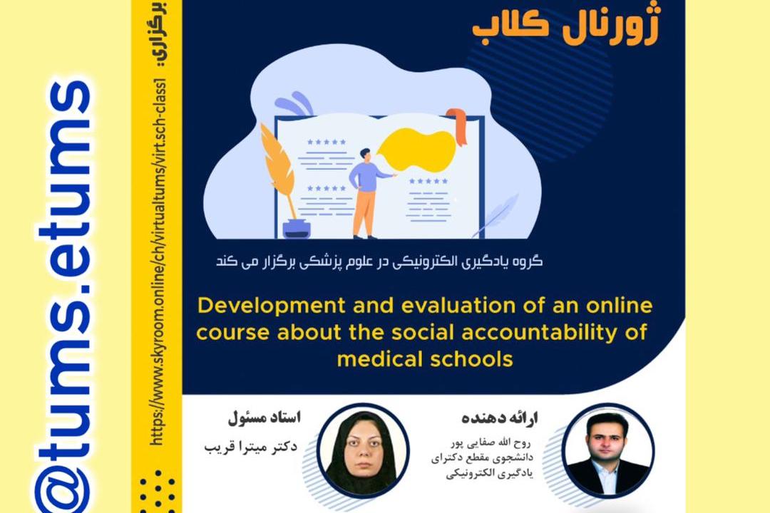 گروه یادگیری الکترونیکی دانشکده مجازی ژورنال کلاب "Development and evaluation of an online course about the social accountability of medical schools" را برگزار میکند.
