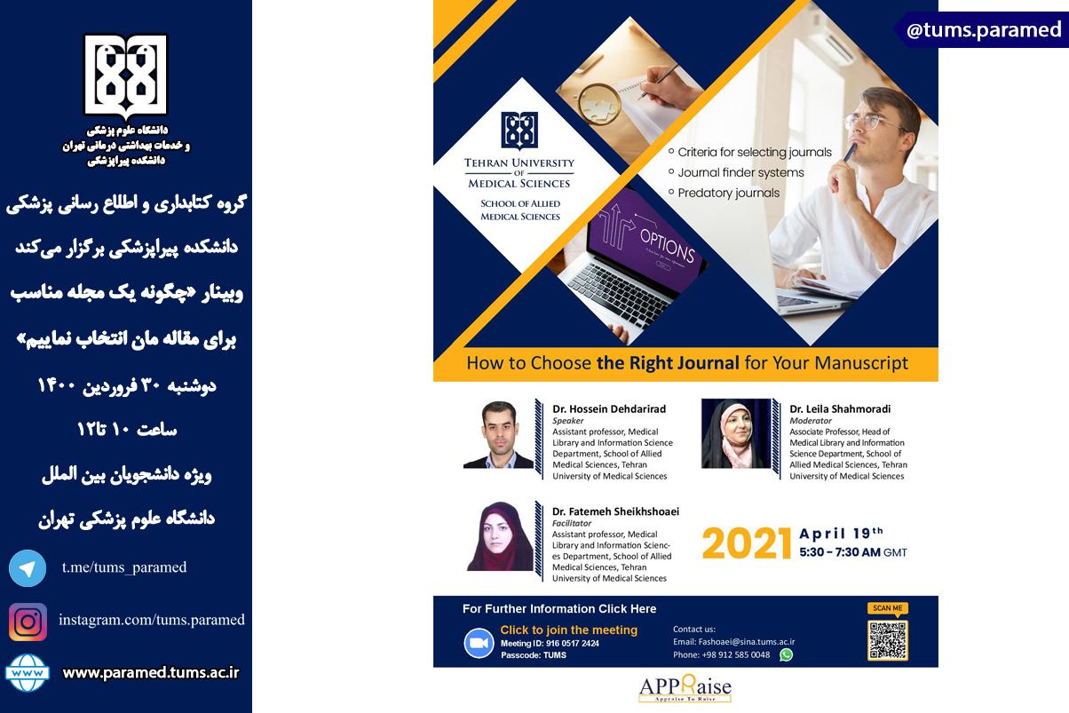 برگزاری وبینار چگونه «یک مجله مناسب برای مقاله مان انتخاب نماییم»