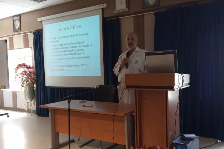 در این کنفرانس که با حضور جمعی از اعضا هیئت علمی، اساتید، متخصصان و فراگیران رشته پزشکی برگزار شد، دکتر سید مجید موسوی موحد، متخصص نفرولوژی به تشریح  عوارض حین دیالیز از جمله کاهش فشار خون و آریتمی‌های قلبی پرداخت.
