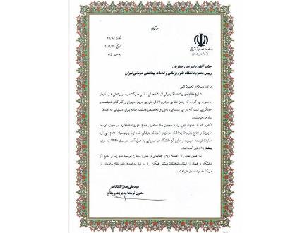 تقدیر از دانشگاه علوم پزشکی تهران برای کسب رتبه پیشتاز در «مدیریت عملکرد در حوزه توسعه مدیریت و منابع»