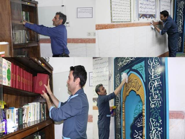 در آستانه فرا رسیدن ماه مبارک رمضان نمازخانه این مرکز با همکاری جمعی از کارکنان غبار روبی شد.