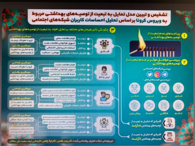 در این نشست ابعاد روانی ـ اجتماعی رفتارهای پیشگیرانه از کووید 19 با سخنرانی های دکتر مجید صفاری نیا، استاد روانشناسی و مدیرکل دفتر مشاوره و سلامت سازمان دانشجویان وزارت علوم، دکتر فرشید رضایی، مدیرکل دفتر آموزش و ارتقای سلامت وزارت بهداشت و عضو کمیته علمی کشوری کووید 19، دکتر زهره رافضی، عضو هیئت علمی دانشگاه علامه طباطبایی و عضو هیئت مدیره انجمن روان شناسی اجتماعی ایران، دکتر طاهره دهداری، عضو هیئت علمی دانشگاه علوم پزشکی ایران، دکتر نسرین روزبهانی، عضو هیئت علمی دانشگاه علوم پزشکی اراک، دکتر آزاده عسگری، عضو هیئت علمی دانشگاه شهید بهشتی و عضو هیئت مدیره انجمن روان شناسی اجتماعی ایران، دکتر حمید پیروی، رییس مرکز مشاوره دانشگاه تهران، دکتر فاطمه زارعی، عضو هیئت علمی دانشگاه تربیت مدرس و دکتر عباس وثوق مقدم، عضو هیئت علمی دانشگاه علوم پزشکی تهران مورد بررسی قرار گرفت.