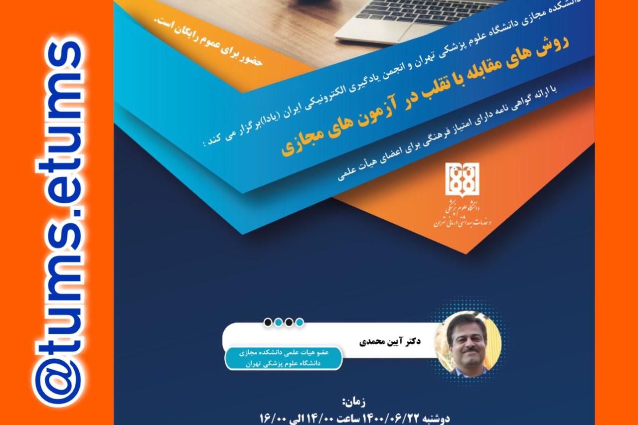 به گزارش روابط عمومی دانشگاه علوم پزشکی تهران دانشکده مجازی، این دانشکده با همکاری انجمن یادگیری الکترونیکی ایران (یادا) سخنرانی علمی اخلاق در فضای مجازی را در ادامه اهداف بیستمین همایش کشوری آموزش علوم پزشکی با عنوان "روش های مقابله با تقلب در آزمون های مجازی" را ویژه اعضای هیئت علمی دانشگاههای علوم پزشکی سراسر کشور بصورت رایگان و با گواهی نامه دارای امتیاز فرهنگی برگزار می کند.