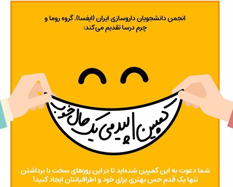 به گزارش روابط عمومی مرکز پژوهش های علمی دانشجویان، انجمن ایفسا، گروه روما و درسا با اعتقاد به اینکه میتوانیم با اپیدمی یک اتفاق یا حال خوب برای خود یا دیگران به مبارزه با کرونا برویم، کمپین اپیدمی یک حال خوب را برگزار می کند.