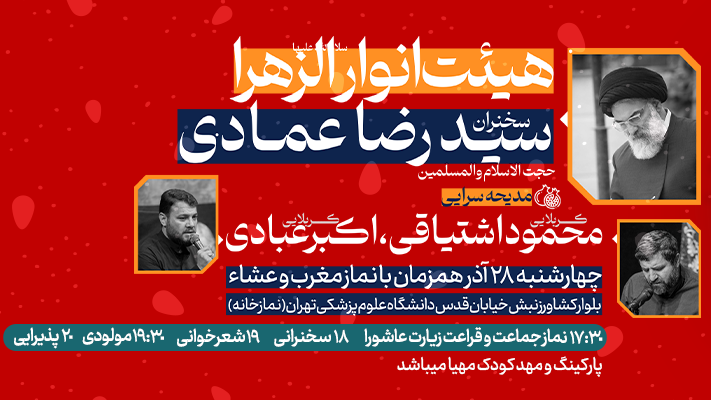 در آستانه فرارسیدن سالروز ولادت حضرت زهرا (س) مراسم هیئت انوارالزهرا (س) دانشگاه علوم پزشکی تهران برگزار خواهد شد.