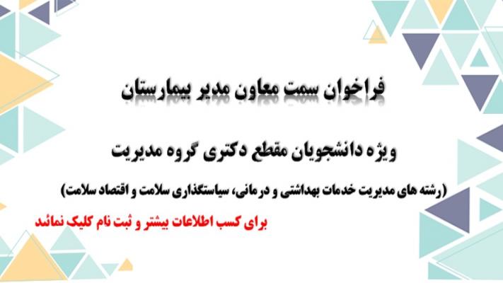 فراخوان عمومی شایسته‌گزینی سمت معاون مدیر بیمارستان ویژه دانشجویان مقطع دکتری گروه مدیریت دانشکده بهداشت دانشگاه علوم پزشکی تهران