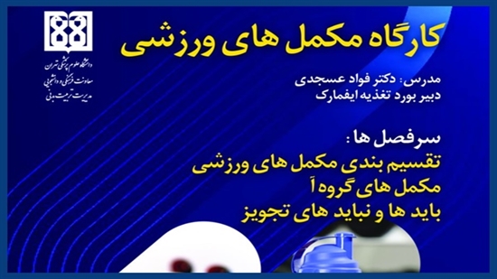 مدیریت تربیت بدنی دانشگاه علوم پزشکی تهران در نظر دارد، کارگاه یک روزه مکمل های ورزشی را به مناسبت هفته تربیت بدنی ویژه دانشجویان و کارکنان دانشگاه علوم پزشکی تهران برگزار کند.