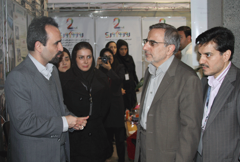 بازدید دکتر منصوری از غرفه کانون توسعه نوآوری خانواده جنوب غرب دانشگاه و بیمارستان فارابی