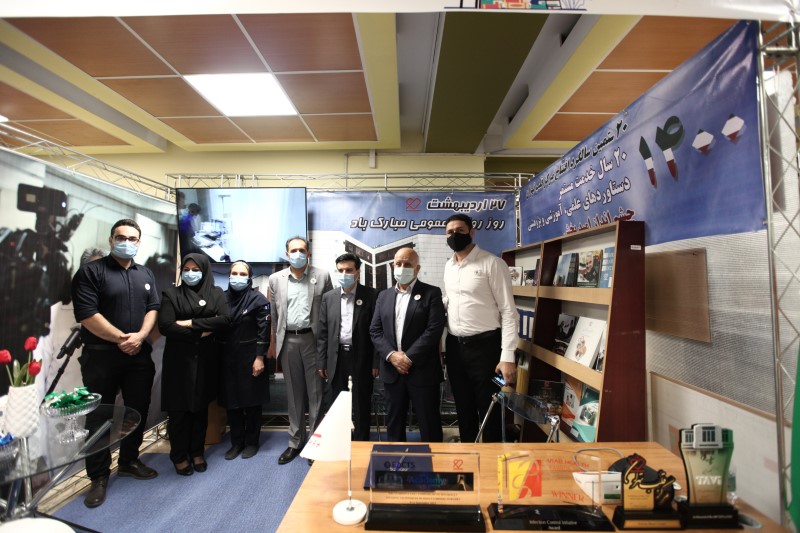 وی عکس منتخب و نمونه از کارگاه تولید ماسک در مرکز قلب تهران را به‌عنوان یادبود امضا کرد.