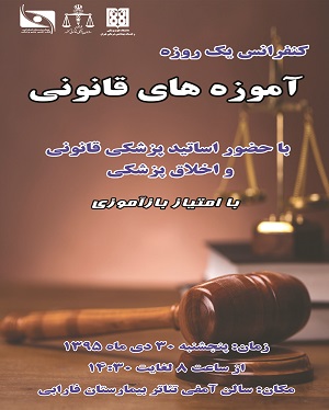 دفتر حقوقی بیمارستان فارابی با همکاری پزشکی قانونی، کنفرانس یک روزه «آموزه های قانونی» برای کادر درمان با حضور اساتید پزشکی قانونی و اخلاق پزشکی از ساعت ۸ تا ۱۴:۳۰ روز پنجشنبه ۳۰ دی ماه ۱۳۹۵ در سالن آمفی تئاتر پروفسور شمس بیمارستان فارابی برگزار می شود.