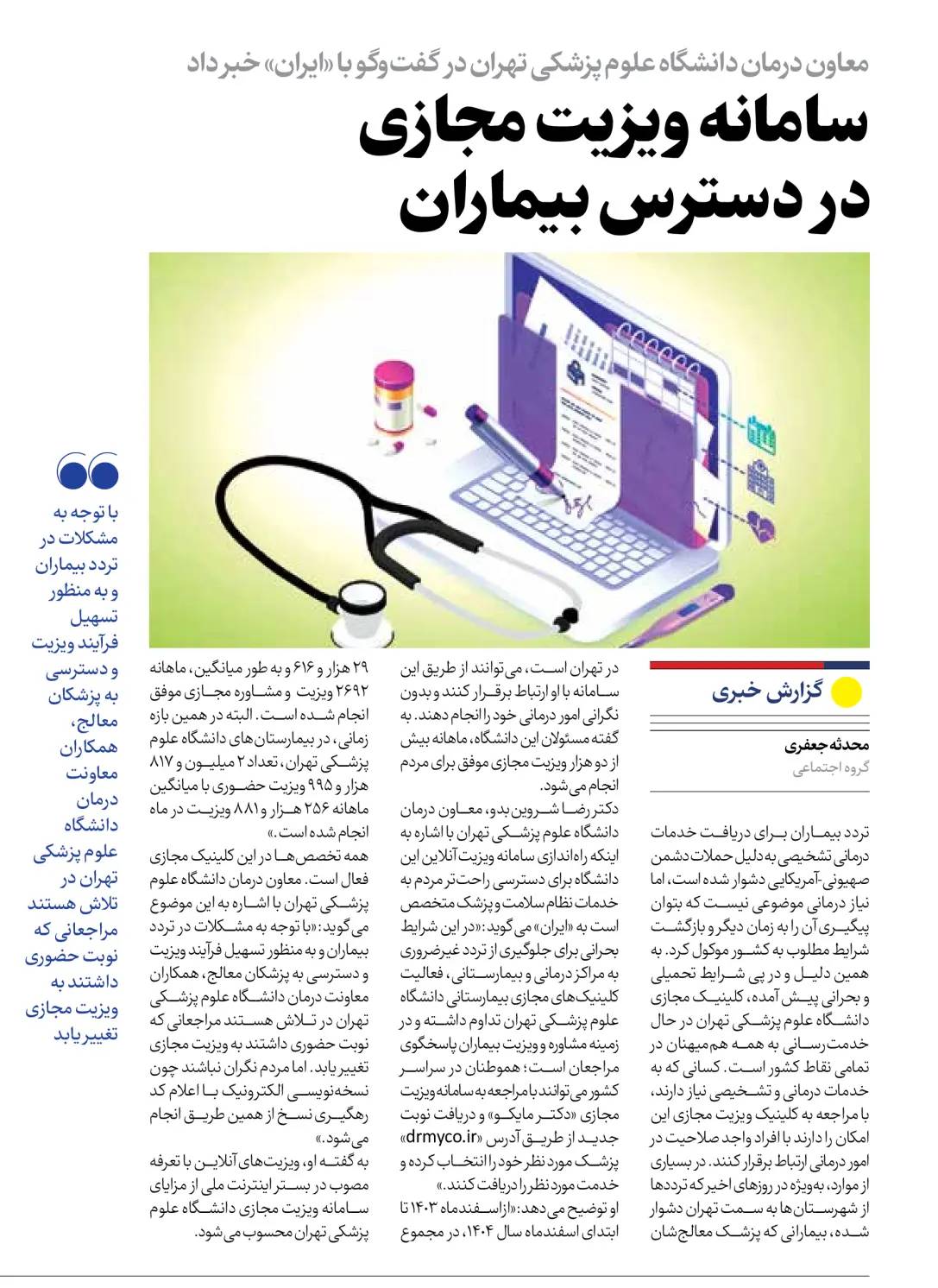 این خبر در روزنامه ایران با همکاری روابط عمومی دانشگاه علوم پزشکی تهران تهیه شده است.