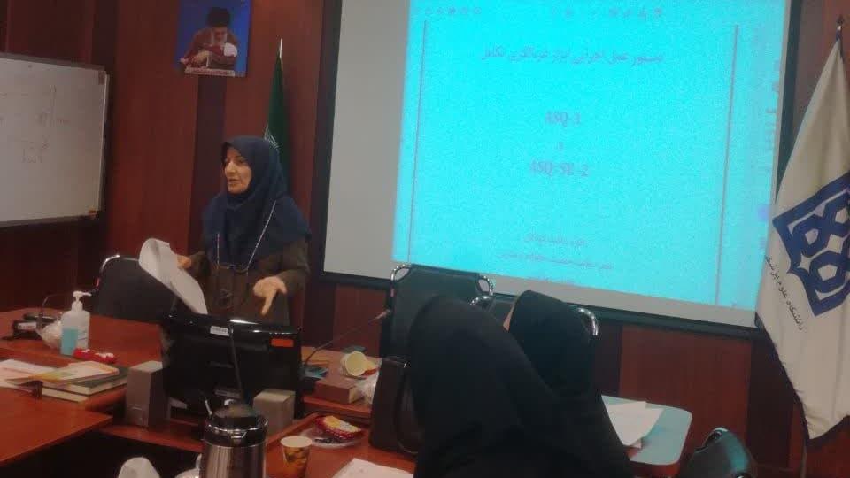 وی در ادامه مطالب در خصوص نحوه غربالگری اختلالات تکاملی با استفاده از پرسشنامههای ASQ-۳ توضیح داده شد پسازآن نیز در مورد چگونگی استفاده از پرسشنامه ASQ: SE-۲ جهت غربالگری مشکلات اجتماعی– هیجانی در کودکان زیر ۵ سال مطالب آموزش ارائه کرد و سپس از اهمیت پایش و غربالگری تکامل، نکات مهم در استفاده از پرسشنامههای ASQ-۳ و ASQ: SE-۲ ، نحوه تکمیل پرسشنامهها، ویژگی سؤالات، انتخاب پرسشنامه مناسب سن کودک، محاسبه سن تطبیق دادهشده در کودکان نارس جهت انتخاب پرسشنامه، نحوه امتیازدهی به هر سؤال پرسشنامههای ASQ-۳ و ASQ: SE-نحوه مقایسه امتیازات دادهشده در پرسشنامهها با نقاط برش، تعیین نوع اقدام موردنیاز برای کودک بر اساس امتیاز کسبشده در پرسشنامههای ASQ-۳ و ASQ: SE-۲ و توصیههایی موردنیاز برای ارزیابیهای تکمیلی و تخصصی کودکان نیازمند گفت.