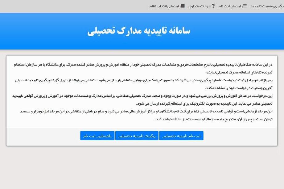 فرایند استعلام الکترونيکی تأییدیه مدرک تحصيلی دیپلم و مدارک تحصيلی صادره از وزارت علوم، تحقيقات و فناوری بر بستر اينترنت فراهم شد.