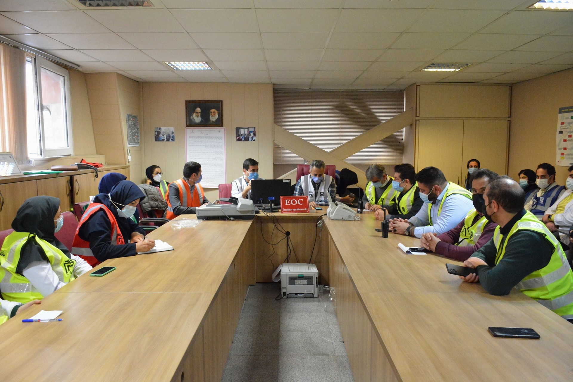 به گزارش روابط عمومی دانشگاه علوم پزشکی تهران مجتمع بیمارستانی امام خمینی (ره) سهشنبه 21 دی 1400 در راستای برگزاری مانور دور میزی رزمایش شهدای خدمت و سلامت که با هماهنگی سازمان اورژانس کشور و مشارکت 20 دستگاه اجرایی و سازمان امدادی ازجمله دانشگاههای علوم پزشکی تهران، ایران، شهید بهشتی و البرز اجرا شد؛ تیم بحران مجتمع بیمارستانی امام خمینی (ره) به فرماندهی دکتر سید علی دهقان منشادی رئیس و اعضای اصلی چارت بحران مجتمع در سوله بحران(EOC) این مرکز، فوری تشکیل و با هماهنگی ستاد بحران دانشگاه نحوه تشکیل کارگروه ها، هماهنگیها، تصمیمگیریها و برنامهریزیهای ضروری مدیریت حادثه های فرضی انفجار در پاساژ علاء الدین وتصادف در خیابان های استاد معین و ستاری روبه روی پاساژ کوروش تهران بزرگ، تمرین و آمادگی سطوح مختلف مدیریتی، امنیتی، درمانی، خدمات و پشتیبانی مجتمع در پذیرش آسیب دیدگان فرضی این حوادث ارزیابی شد.