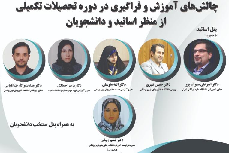 پنل چالش های آموزش و فراگیری در دوره تحصیلات تکمیلی از منظر استادان و دانشجویان با حضور معاون آموزشی دانشگاه، رئیس و استادان دانشکده فناوری های نوین پزشکی برگزار می شود.