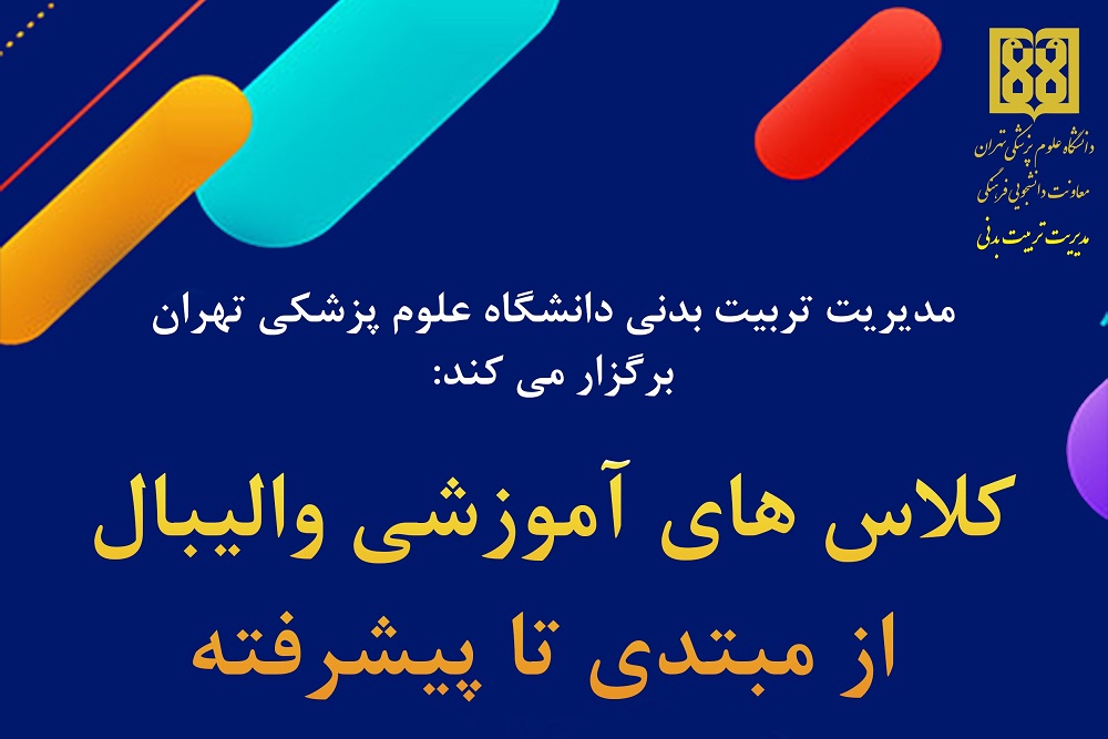 مدیریت تربیتبدنی کلاس های آموزشی والیبال از مبتدی تا پیشرفته را ویژه بانوان کارمند و اعضای هیئت علمی دانشگاه علوم پزشکی تهران برگزار می کند.