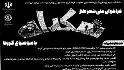 شعر طنز فراخوان ملی شعر طنز جشنواره ملی شعر طنز با موضوع «کرونا» برگزار میشود. آخرین مهلت فراخوان، 15 تیر 99 میباشد. --> دانشگاه علوم پزشکی شیراز با همکاری معاونت فرهنگی و دانشجویی وزارت بهداشت، درمان و آموزش پزشکی، جشنواره ملی شعر طنز با موضوع...