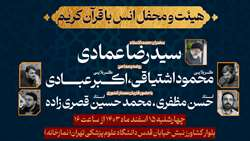 هیئت انوارالزهرا (س)، نخستین مراسم ماهانه این هیئت در سال جدید همزمان با ایام وفات حضرت عبدالعظیم حسنی (ع)، چهارشنبه 27 فروردین 1404 از ساعت 19 در محل نمازخانه ستاد مرکزی دانشگاه علوم پزشکی تهران با هماهنگی و همراهی سایر بخش های فرهنگی دانشگاه برگزار...