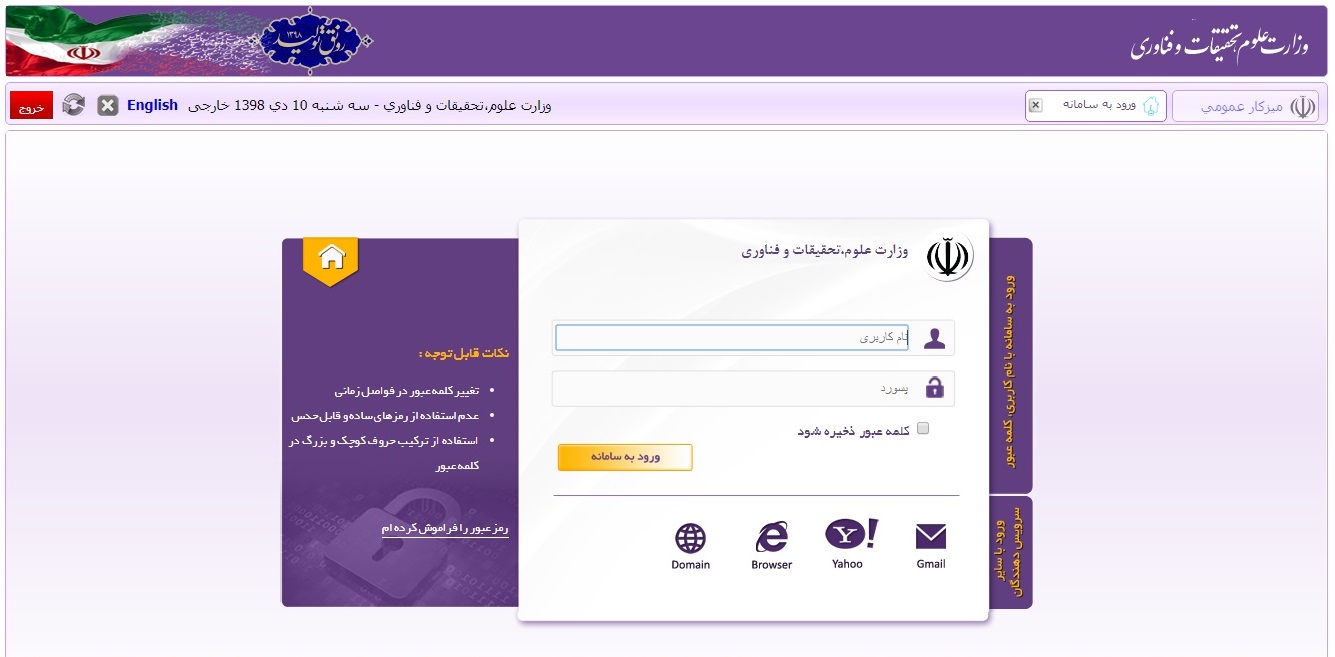اتصال به سامانه اتوماسیون وزارت علوم، تحقیقات و فناوری