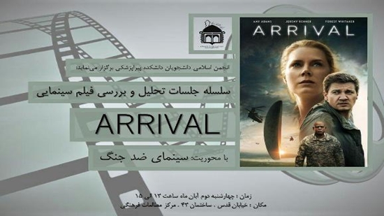 به گزارش روابط عمومی معاونت دانشجویی و فرهنگی، این جلسه تحلیل و بررسی فیلم روز چهارشنبه دوم آبان 97 از ساعت 13 تا 15 در سالن مطالعات فرهنگی معاونت دانشجویی و فرهنگی دانشگاه به نشانی خیابان قدس، پلاک 21، طبقه همکف، با تحلیل فیلم "ورود" (Arrival) برگزار و علاقه مندان می توانند در زمان اعلام شده در جلسه شرکت کنند.