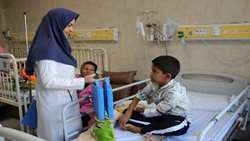 اهدای بسته های لوازم تحریر به بیماران وکارکنان مرکز طبی کودکان