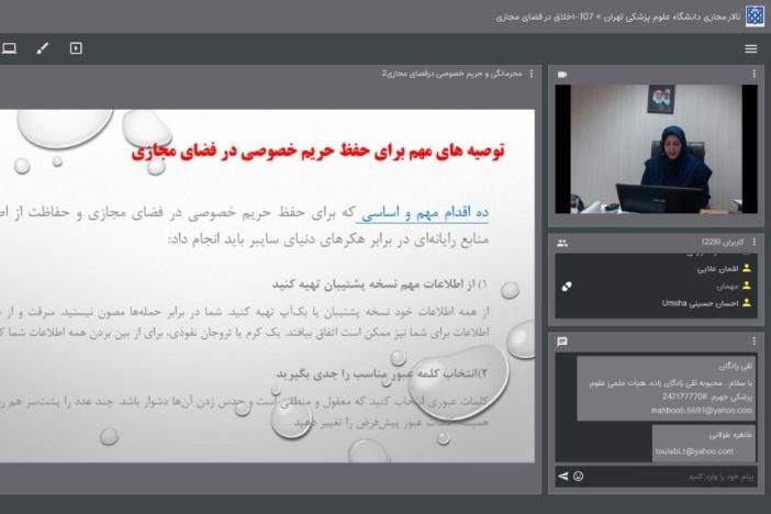 توضیح اینکه در انتهای جلسه به تمامی سوالات، چالشها و ابهامات شرکت کنندگان در موضوع محرمانگی و حریم خصوصی در فضای مجازی پاسخ داده شد. نشست های اخلاق در یادگیری الکترونیکی به صورت ماهانه در روزهای دوشنبه آخر ماه به طور منظم برگزار میشود و حضور برای عموم رایگان و آزاد است. برای اطلاعات بیشتر به سایت دانشکده مجازی etums.tums.ac.ir مراجعه کنید.