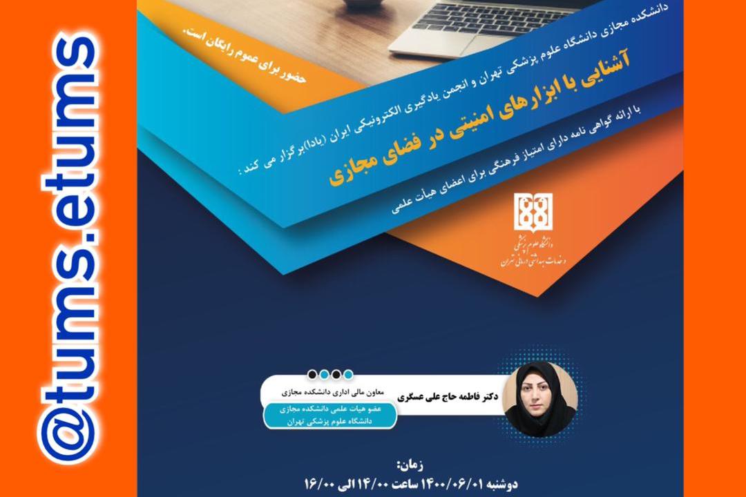 به گزارش روابط عمومی دانشگاه علوم پزشکی تهران دانشکده مجازی، این دانشکده با همکاری انجمن یادگیری الکترونیکی ایران (یادا) سخنرانی علمی اخلاق در فضای مجازی را در ادامه اهداف بیستمین همایش کشوری آموزش علوم پزشکی با عنوان "آشنایی با ابزارهای امنیتی در فضای مجازی" را ویژه اعضای هیأت علمی دانشگاههای علوم پزشکی سراسر کشور بصورت رایگان و با گواهی نامه دارای امتیاز فرهنگی برگزار می کند.