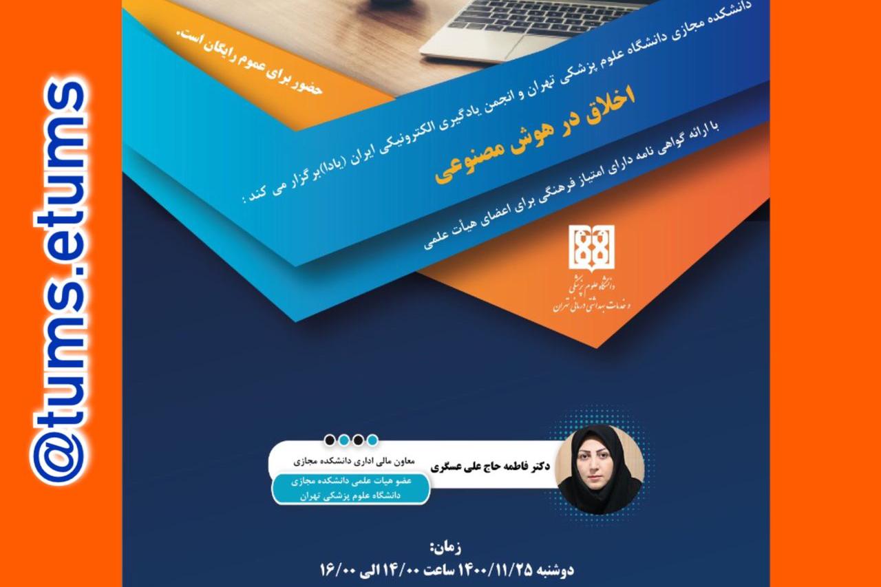 به گزارش روابط عمومی دانشگاه علوم پزشکی تهران دانشکده مجازی، این دانشکده با همکاری انجمن یادگیری الکترونیکی ایران (یادا) سخنرانی علمی اخلاق در فضای مجازی را در ادامه اهداف بیستمین همایش کشوری آموزش علوم پزشکی با عنوان «اخلاق در هوش مصنوعی» را ویژه اعضای هیأت علمی دانشگاههای علوم پزشکی سراسر کشور بصورت رایگان و با گواهی نامه دارای امتیاز فرهنگی برگزار می کند.