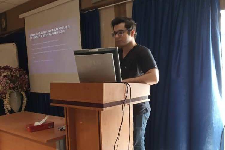 در ابتدای این جلسه که با هدایت دکتر ساسان فلاحی، عضو هیات علمی روماتولوژی و با حضور جمعی از اعضا هیئت علمی، اساتید، متخصصان و فراگیران رشته پزشکی برگزار شد، محمد رضا کروبی، اینترن داخلی به تشریح مکانیزمهای پاتوفیریولوژیک بیماری کووید 19 پرداخت.