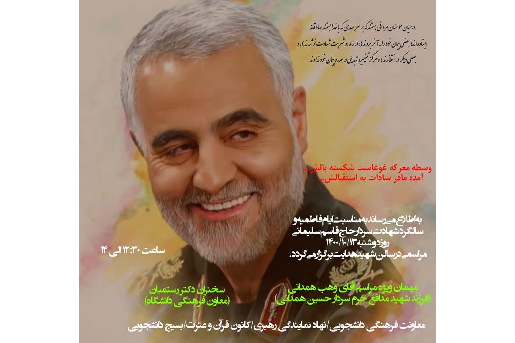 مراسم بزرگداشت دومین سالروز شهادت سردار حاج قاسم سلیمانی در دانشکده دندانپزشکی برگزار می شود