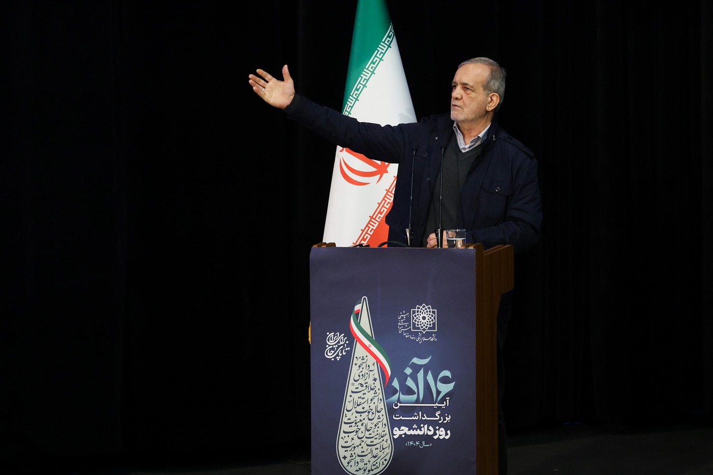دکتر مسعود پزشکیان صبح یکشنبه 16 آذر 1404 در مراسم گرامیداشت روز دانشجو، با حضور در جمع دانشجویان دانشگاه علوم پزشکی شهید بهشتی، پای صحبتهای دانشجویان نشست. در این مراسم، گروههای مختلف دانشجویی از تشکلها، انجمنها، کانونها و شوراهای دانشجویی حضور داشتند و نمایندگان آنها بهطور مستقیم دیدگاهها و نقطهنظرات خود را در حضور رئیسجمهور بیان کردند.