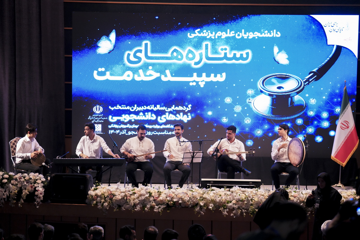 گردهمایی سالیانه دبیران منتخب نهادهای دانشجویی دانشگاه های وزارت بهداشت، درمان و آموزش پزشکی با عنوان «دانشجویان علوم پزشکی ستاره های سپید خدمت» با حضور دکتر محمدرضا ظفرقندی، وزیر بهداشت و دکتر سید رضا رئیس کرمی، رئیس دانشگاه علوم پزشکی تهران روز شنبه 15 آذر 1404 به میزبانی این دانشگاه برگزار شد. در این برنامه وزیر بهداشت؛ تندیس مهر و خرد را به دکتر محمود دوستی استاد گروه بیوشیمی و دکتر آذرخش مکری استاد گروه روانپزشکی دانشکده پزشکی دانشگاه علوم پزشکی تهران اعطا کرد.