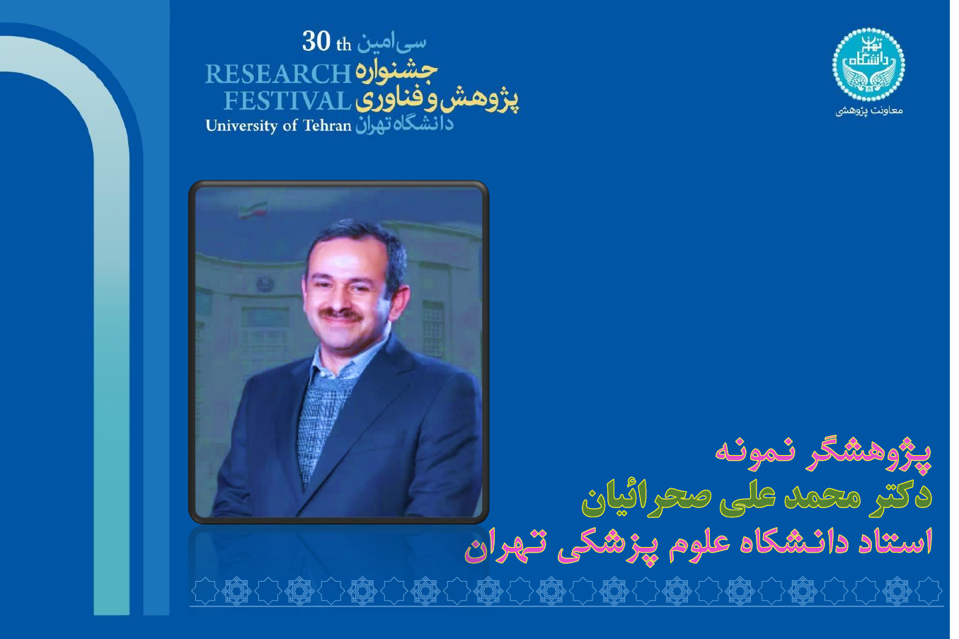 اعطای جایزه پژوهشگر برگزیده به دکتر محمدعلی صحرائیان استاد برجسته دانشکده پزشکی در سی امین جشنواره پژوهش و فناوری دانشگاه تهران
