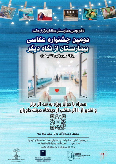 دومین جشنواره عکاسی بیمارستان از نگاهی دیگر ویژه تصویربرداری با تلفن همراه، با همکاری گروه سلامت و هنر دانشکده پزشکی و توسط دفتر یوسرن بیمارستان ضیائیان و همکاری دفتر یوسرن اصفهان زمستان سال 98 برگزار می شود.