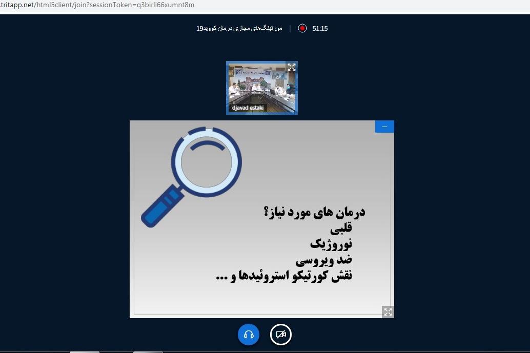 در این مورنینگ مجازی که مسئولیت برگزاری آن را دکتر سید علی دهقان معاون درمان گروه عفونی دانشگاه بر عهده داشت، دکتر نسیم خواجوی راد متخصص داخلی، دکتر میثم خوشاوی متخصص قلب و عروق و دکتر پیام صراف متخصص نورولوژی درباره آخرین یافتهها در درمانهای کووید 19 و طرح مورد یک بیمار جوان مبتلا به کووید 19 که در بخش مراقبت ویژه بیمارستان امام خمینی (ره) بستریشده بود، به بحث و تبادلنظر پیرامون درگیریهای قلبی و مغزی در بیماری کووید ۱۹ پرداختند.