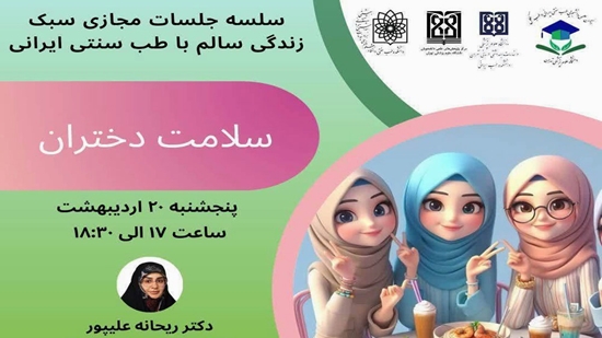 به گزارش سینا رسانه دانشگاه علوم پزشکی تهران معاونت فرهنگی و دانشجویی، وبینار سلامت دختران به مناسبت فرا رسیدن میلاد با سعادت حضرت فاطمه معصومه سلام الله علیها و روز دختر، پنجشنبه ۲۰ اردیبهشت از ساعت ۱۷ تا ۱۸:۳۰ در زمینههای بلوغ و چالشهای دختران، پاکیزگی و زیبایی دختران، افزایش شانس مادری برگزار میشود.