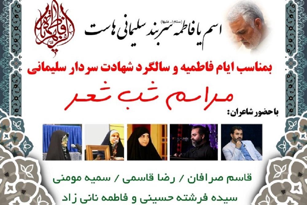 به مناسبت ایام فاطمیه و سالگرد شهادت سردار سلیمانی، شب شعر برگزار می شود