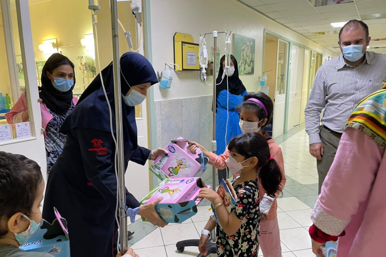 توزیع هدیه به کودکان بستری در مرکز طبی کودکان به مناسبت هفته ملی کودک