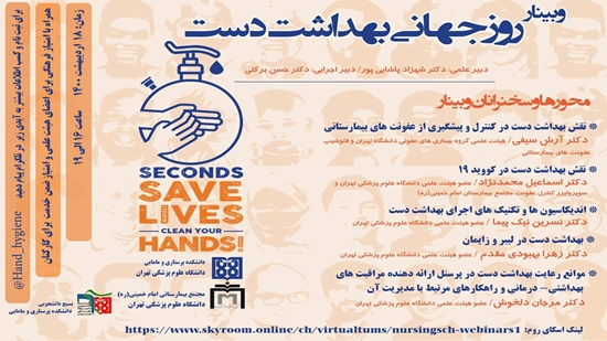وبینار روز جهانی بهداشت دست ۱۸ اردیبهشت ماه ۱۴۰۰ برگزار می شود.
